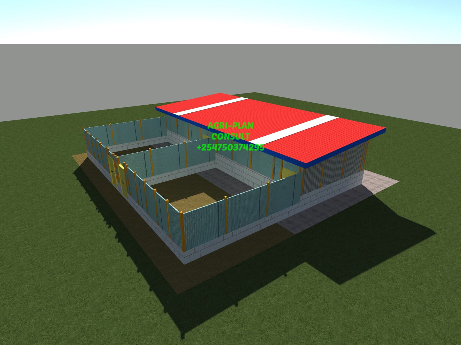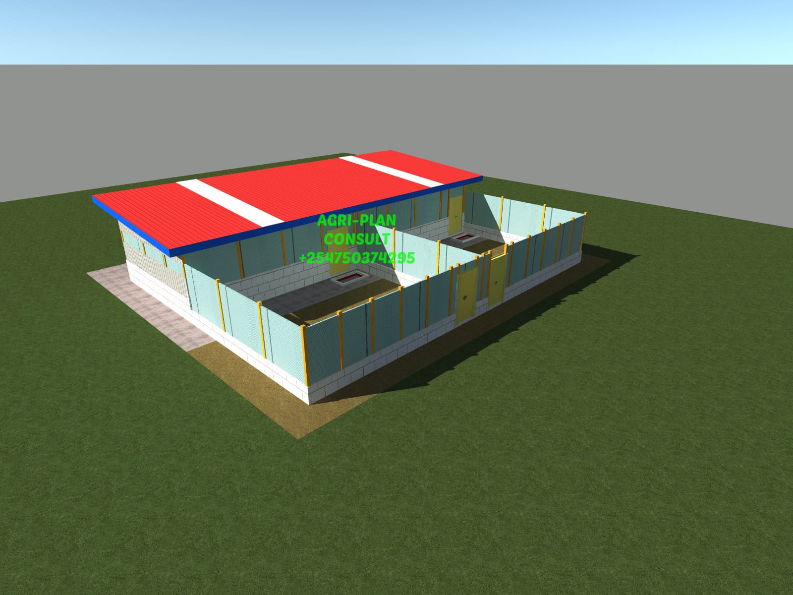 1000 CAPACITY DETAILED POULTRY UNIT PLAN AND DESIGNS WITH TWO PARTITIONS, THE PLAN IS DESIGNED FOR SEMI-INTENSIVE SYSTEM OF PRODUCTION WITH A FRONT RUN SPACE.
